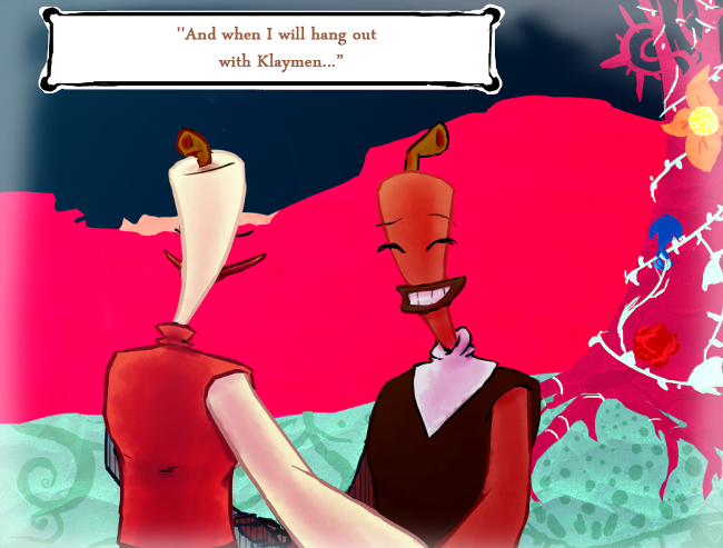 “Yes,” the tall man nodded. “It's a screwed up land and I'm glad to be away from it. Now that we've clarified that the Neverhood isn't such a great place to live in, will you stop being a child and take this journey seriously?”